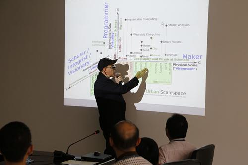 斯蒂夫·曼教授围绕此次讲座主题,首先介绍了自己从事的可穿戴设备研发的心路历程,随后又讲解了人机交互和增强现实等方面的理论框架,特别是提出了非计算机图像显示的增强现实非方法。讲座中还展示了他的研究成果,如不依靠图形图像方式直接观察自然界的电磁波和声音等多种肉眼不可见信号等,并在现场进行了生动的演示。