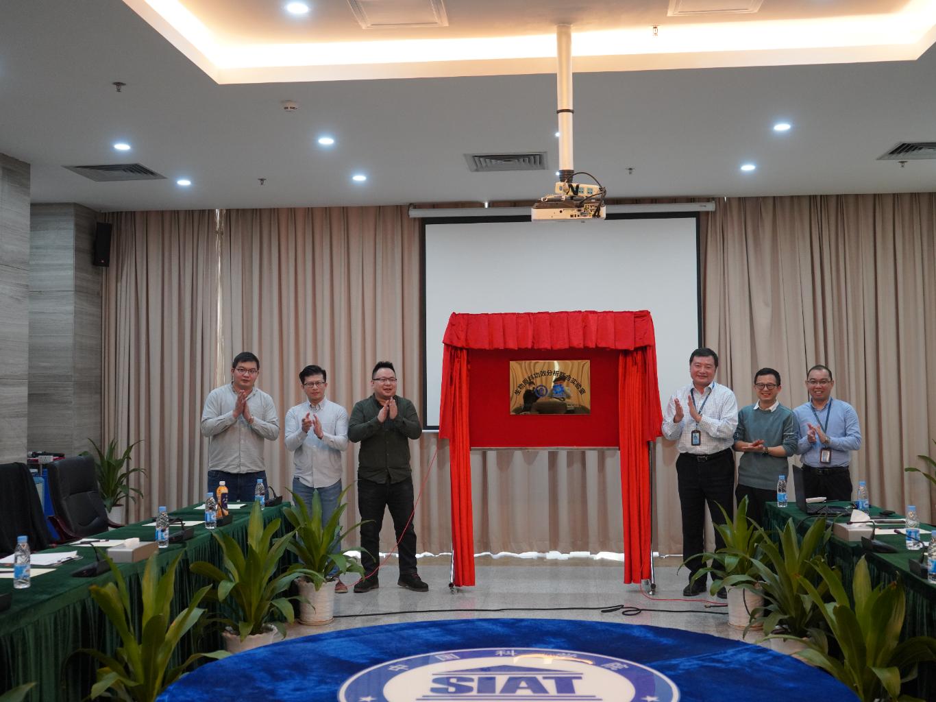 深圳先进院发展处处长毕亚雷,计算机辅助药物设计研究中心主任、联合实验室负责人袁曙光,发展处副处长黄小华,欣邦生物创始人兼执行长杨正,生产部总监朱俊杰,质量部总监许光辉等出席揭牌仪式。