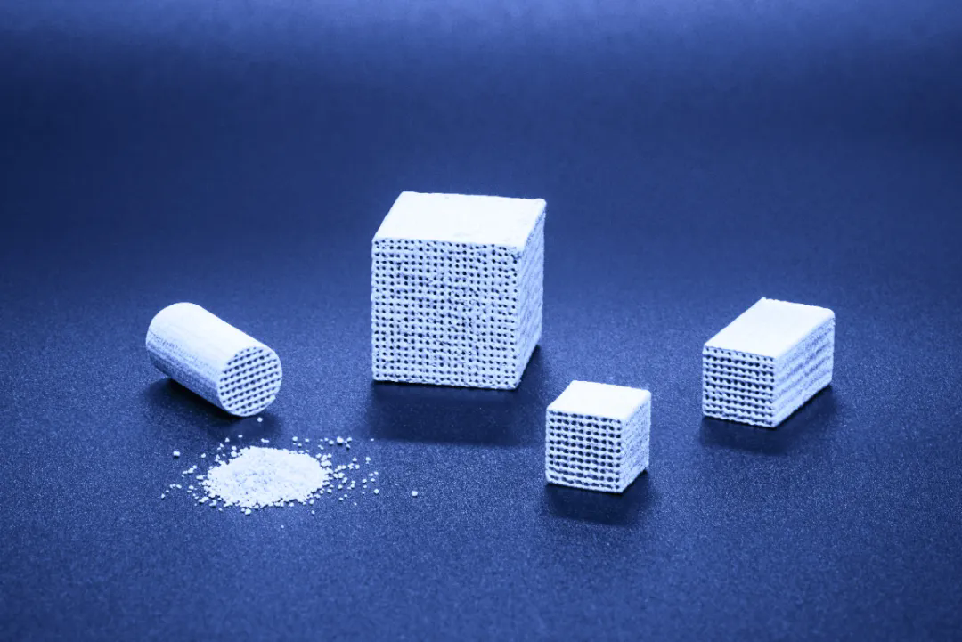 依托“产学研医”协同创新模式,转化中心通过集成医学、生物学、材料学以及工程学等多学科交叉,利用低温3D打印方法开发出“含镁可降解高分子骨修复材料”,攻克了3D打印骨科器械的多项技术难点,成功实现了含镁骨修复材料的精准成型,并赋予材料特殊的仿生结构和适宜的强度。随着镁金属的加入,该材料不仅实现了与人体松质骨相近的力学强度,使其在手术操作中能够稳定应对冲击力,避免崩解或产生碎屑,还能在成骨早期提供稳定的力学支撑。同时,该材料能在6至9个月内完全降解并被人体充分吸收,避免了因材料残留引起的体内异物反应,降解过程中释放的镁离子能够参与新骨的形成和正常的生理代谢过程,加速骨缺损修复。