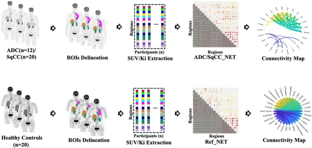 研究团队采用创新的网络分析方法来解析器官间的代谢相互作用,通过测量25个关键器官的静态与动态葡萄糖代谢水平,团队构建了两种癌症亚型的精细代谢"连接图谱"。实验结果表明,肺腺癌患者表现出大脑与肾上腺、胰腺等内分泌器官的代谢协同增强,可能反映神经内分泌代偿机制。然而肺鳞状细胞癌患者则呈现广泛的代谢网络解体,这与该亚型更具侵袭性的全身恶化特征相符。研究团队还建立了患者个体化代谢网络模型,为疾病影响与进展提供了个性化评估框架。这种创新方法有望催生新型生物标志物,用于追踪疾病演变或预测治疗反应。该研究将关注点从孤立肿瘤活动转向系统代谢动态,为癌症诊疗开辟新路径,后续可开展大规模纵向研究验证结论,并探索这类网络化生物标志物如何指导肺癌临床决策。