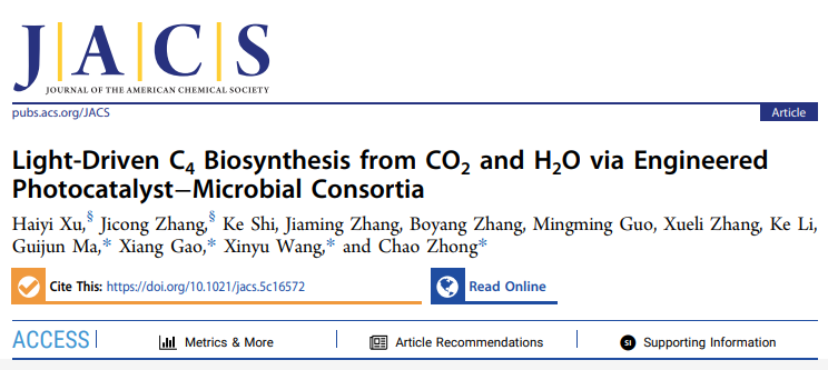 JACS | 深圳先进院构建光催化剂-人工微生物群落杂合体驱动固碳高值化学品生物合成