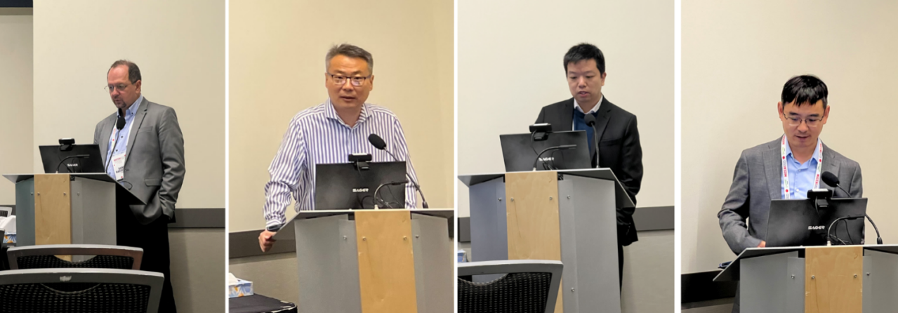 现场专家作主旨报告:从左至右Daniel RACOCEANU教授(Sorbonne University)、Shuo Li教授(Case Western Reserve University)、吴佳研究员(MD Anderson Cancer Center)、吕行博士(Sanmed Biotech Ltd)