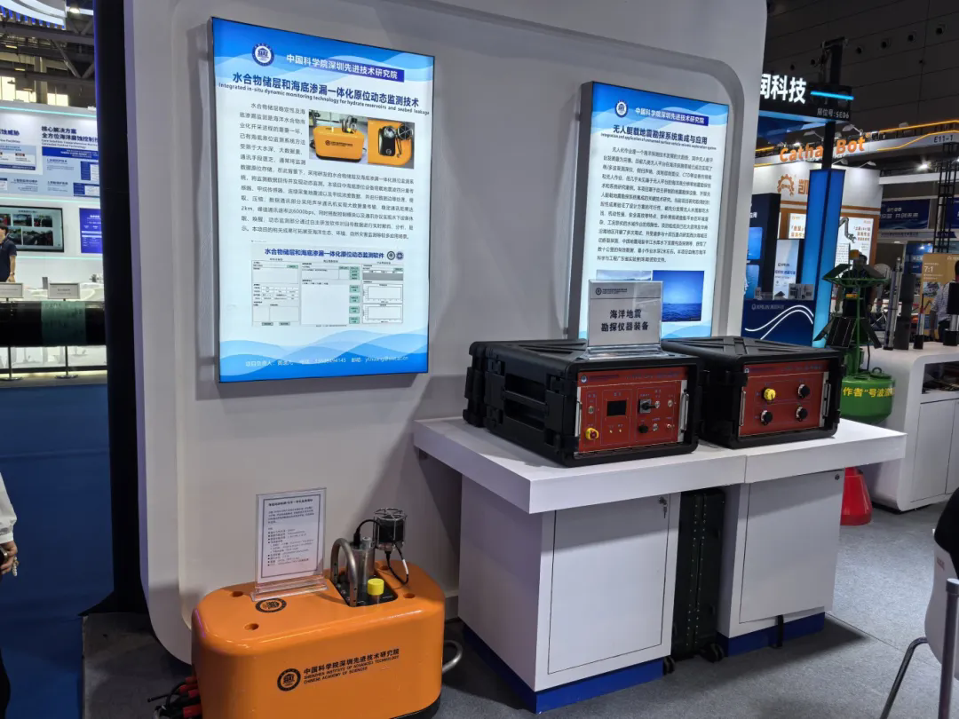 IPP浮游生物原位监测仪、适用于水下移动平台的辐照度计、水合物储层和海底渗漏一体化原位动态监测技术、无人艇载地震勘探系统、水下激光距离选通成像系统、深海摄影测量系统……本届展会上,深圳先进院带来了多个自主研发与合作的海洋领域前沿科技成果。